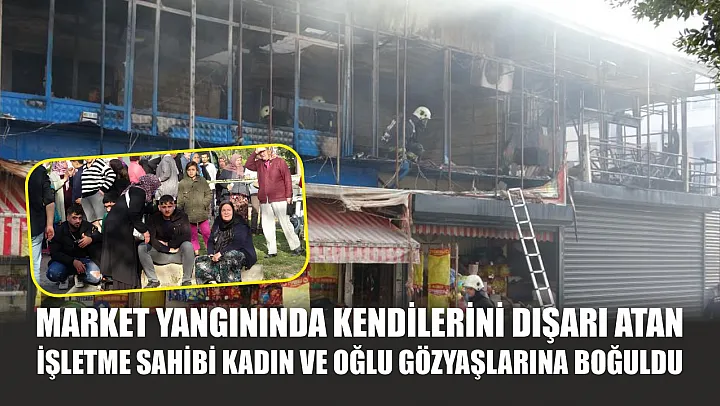 Bir markette çıkan yangını fark ederek kendilerini dışarı atan işletme sahibi kadın ve oğlu gözyaşlarına boğuldu. Yangın itfaiye ekiplerinin, müdahalesiyle söndürüldü.