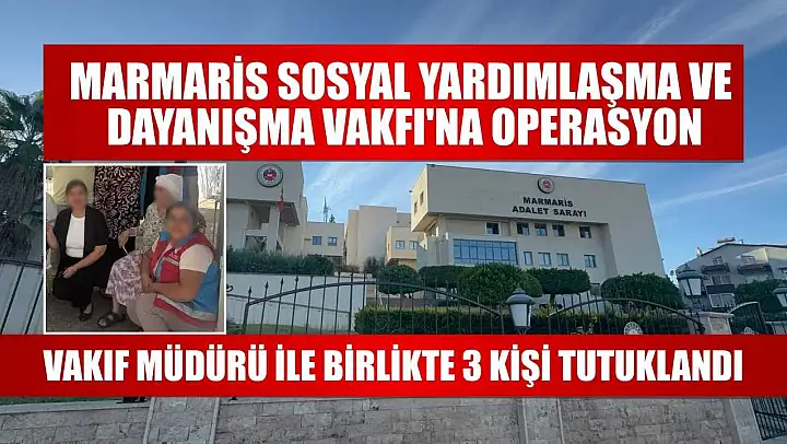 Edinilen bilgiye göre; Marmaris Sosyal Yardımlaşma Vakfı'nda, yaşlı ve yardıma muhtaç vatandaşlara ait ödeneklerin yatırılmadığı ortaya çıkınca Marmaris Cumhuriyet Başsavcılığınca soruşturma başlatıldı. Yaşlı muhtaçların artık ödenek alamadıklarına yönelik şikayetleri üzerine başlatılan soruşturma kapsamında jandarma tarafından vakıf müdürü ve çalışanlar ile vakfın hesap hareketleri 3 ay takibe alındı. 3 ay süren takip sonrası düzenlenen operasyonda Vakfın 17 yıllık Müdürü E.K.Ç. ve A.K. ve S.G. adlı iki personeli gözaltına alındı. Vakıf Müdürü'nün evinde yapılan aramada bir miktar altın ile para ele geçirildiği öğrenildi.