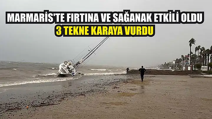 Marmaris'te etkili olan şiddetli fırtına üç yelkenliyi karaya sürüklerken, teknesi kıyıya vuran Rus vatandaşının kendi çabasıyla karaya çıkmayı başardığı öğrenildi. Etkili olan sağanak yağış ve devrilen ağaçlar nedeniyle ekipler teyakkuza geçti.