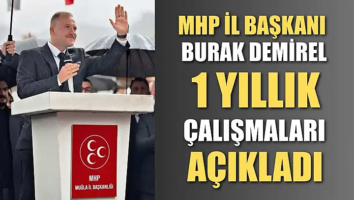 Milliyetçi Hareket Partisi (MHP) Muğla İl Başkanı Burak Demirel, görevinin birinci yılı dolayısıyla yaptığı değerlendirmede, geride kalan süreçte teşkilatlarla birlikte yoğun bir çalışma temposu yürüttüklerini belirterek, 'Bu bize makam değil, vebal yükler' sözünü hatırlattı ve 'Yükümüz ağır ama birlik oldukça güçleniyoruz' dedi.