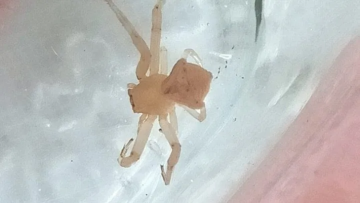 Muğla'nın Milas ilçesinde 6 yaşındaki minik Yankı'nın dikkatini çeken ve babası Erkan Erol tarafından koruma altına alınan Latince adı thomisus onustus olan ve insan yüzüne benzeyen görüntüsüyle görenleri hayrete düşüren köşeli yengeç örümceği bulundu.