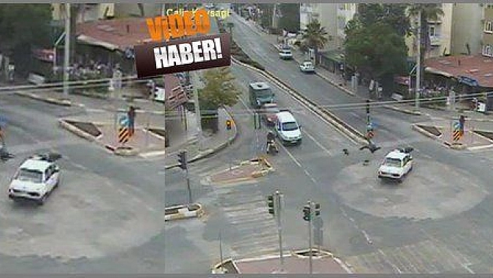 Fethiye Çalış kavşağında kırmızı ışıkta geçtiği iddia edilen bir araca, karşı yönden gelen bir motosiklet hızla çarptı ve çarpma anı MOBESE kamaraları tarafından saniye saniye görüntülendi.