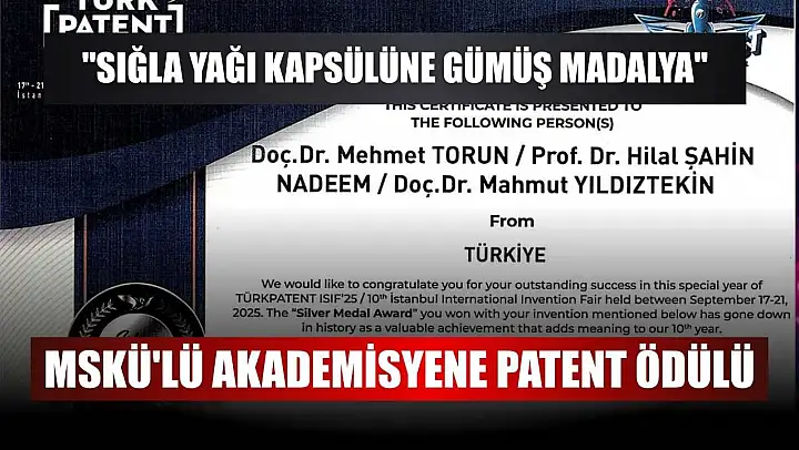 Muğla Sıtkı Koçman Üniversitesi (MSKÜ) Köyceğiz Meslek Yüksekokulu öğretim üyesi Doç. Dr. Mahmut Yıldıztekin, 'Sığla Yağı Kapsülü' patentiyle TÜRKPATENT ISIF'25 Uluslararası Buluş Fuarı'nda Gümüş Madalya kazandı.