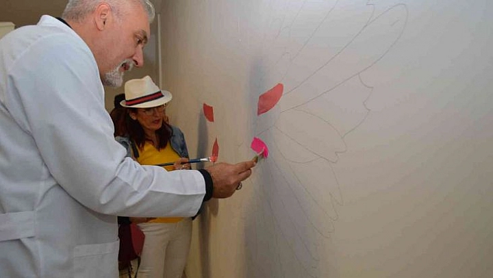 Muğla Eğitim ve Araştırma hastanesinde görevli Radyoloji Uzmanı Doç. Dr. Funda Dinç koordinatörlüğünde mamografi odasının duvarları boyandı.