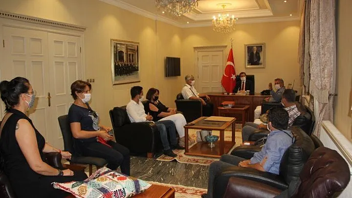 Muğla Valisi Orhan Tavlı, Muğla'ya atanmasının ardından hayırlı olsun ziyareti için gelen konuklarını ağırlamaya devam ediyor. Ziyaretler kapsamında Muğla İnternet Gazetecileri Derneği (İGD) Başkanı Seda Köktener, derneğin yönetim kurulu üyeleri Sıdıka Zeybek Kölemen, Ersin Dal, Murat Yalçın, Fatih Bozoğlu, Volkan Yıldız ve Arzu Sarıtaş, Muğla Valisi Orhan Tavlı'ya hayırlı olsun ziyareti gerçekleştirdiler.