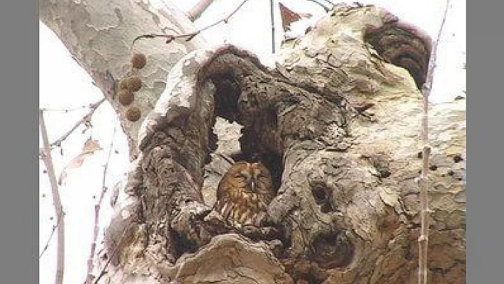 Nesli azalan kuş türleri arasında yer alan bir Baykuş Kayaköy Kuyu başı mevkiinde bulunan çınar ağacını mesken tuttu.
