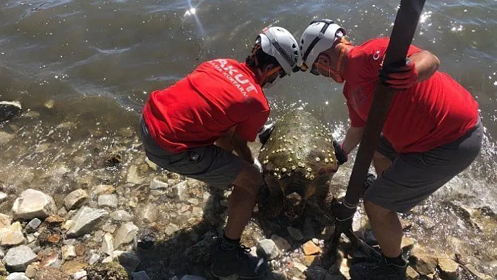 Yaralı halde güllük limanı kıyısında bulunan nesli tükenmekte olan caratta caretta cinsi deniz kaplumbağası AKUT ekipleri tarafından kurtarıldı.