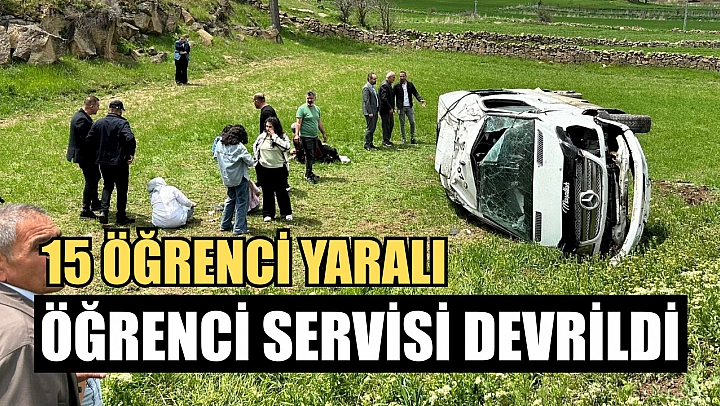 Öğrenci servisinin devrilmesi sonucu 15 öğrenci yaralandı.