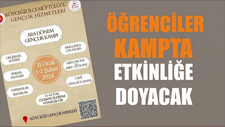 Muğla'nın Köyceğiz İlçe Müftülüğü Gençlik Koordinatörlüğü gençlere yönelik Köyceğiz İlçe Gençlik Merkezi Müdürlüğü işbirliğinde ara dönem kampı düzenliyor.