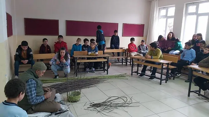 Köyceğiz Ortaokulu öğrencilerine sepet örme sanatı öğretildi.