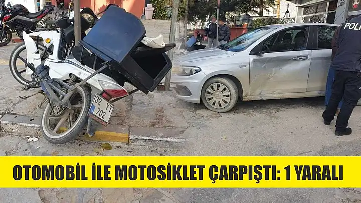 Isparta'nın Yalvaç ilçesinde otomobil ile motosikletin çarpışması sonucu meydana gelen kazada motosiklet sürücüsü yaralandı.