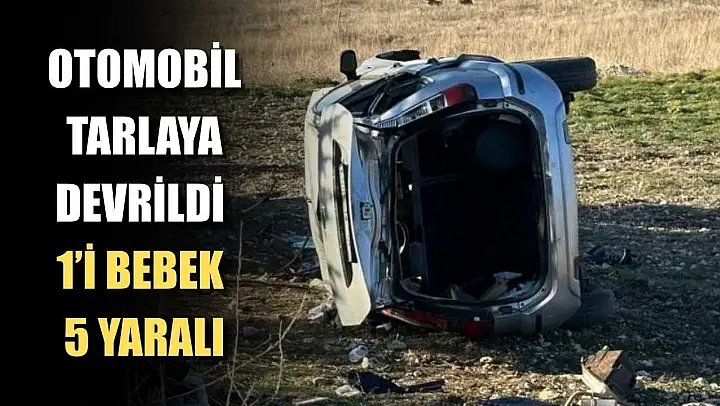 Otomobil tarlaya devrildi: 1'i bebek 5 yaralı
