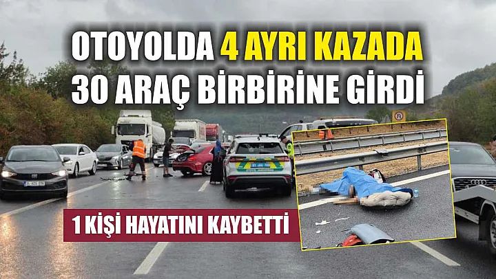 Anadolu otoyolu Düzce kesiminde meydana gelen 4 ayrı trafik kazasında toplam 30 araç birbirine girdi. Kazalarda 16 kişi yaralanırken, 1 kişi hayatını kaybetti.