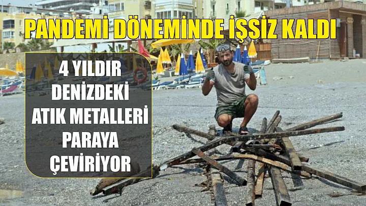 Otobüs ve kamyon şoförü olarak çalışırken pandeminin etkisiyle işsiz kalan 4 çocuk babası Erhan Uludağ (37), Antalya'nın Konyaaltı Sahili'nde yüzdüğü sırada denizin dibinde metaller fark etti ve bu durumu fırsata çevirerek metal toplama işine başladı. Palet ve gözlüğüyle tüpsüz dalış yaparak denizden çıkardığı metalleri geri dönüşüme satarak ailesine büyük bir katkı sağlayan Uludağ, yaklaşık 4 yıldır Antalya'nın birçok sahilinde metal çıkardıktan sonra şimdi de Alanya sahillerinde aynı işi yaparak ailesine gelir sağlamayı sürdürüyor. Şu ana kadar 180 ton metal atık toplayan Uludağ, bu yıl hedefini daha da büyüterek 100 ton metal toplayıp 1 milyon TL kazanmayı amaçlıyor.