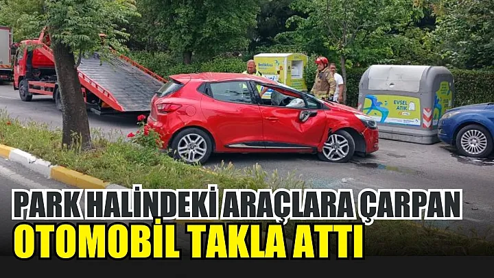 Park halindeki araçlara çarpan otomobil takla attı