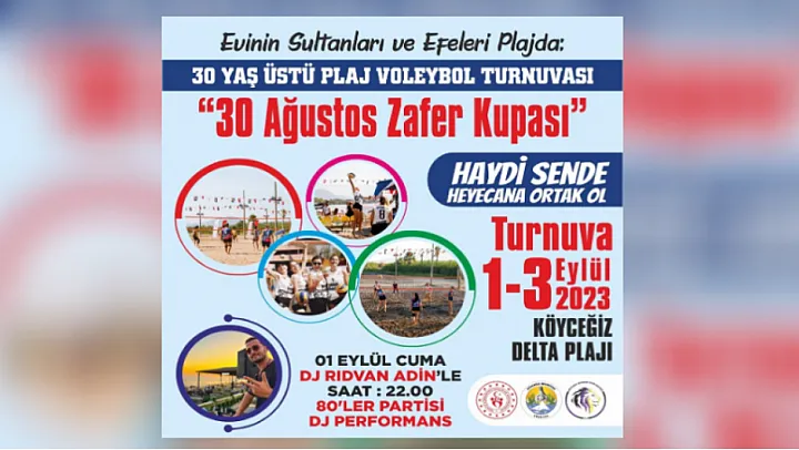 Muğla'nın Köyceğiz ilçesinde 'Evinin Sultanları Plajda' mottosuyla 30 Ağustos Zafer Kupası plaj voleybol turnuvası gerçekleştirilecek.