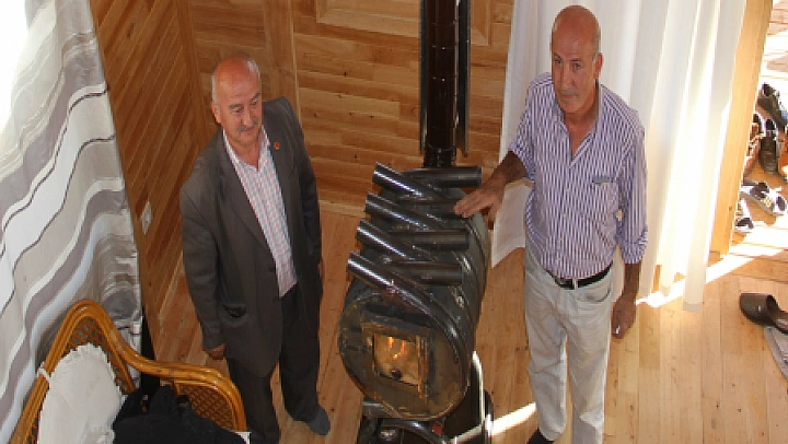 Fethiye'nin İncirköy Mahallesi'nde yaşayan Muharrem Naci Yücel, tamamı ahşap evden oluşan evinin zarar görmemesi için Rus sobası olarak bilinen sobayı tasarlayıp yaptı.