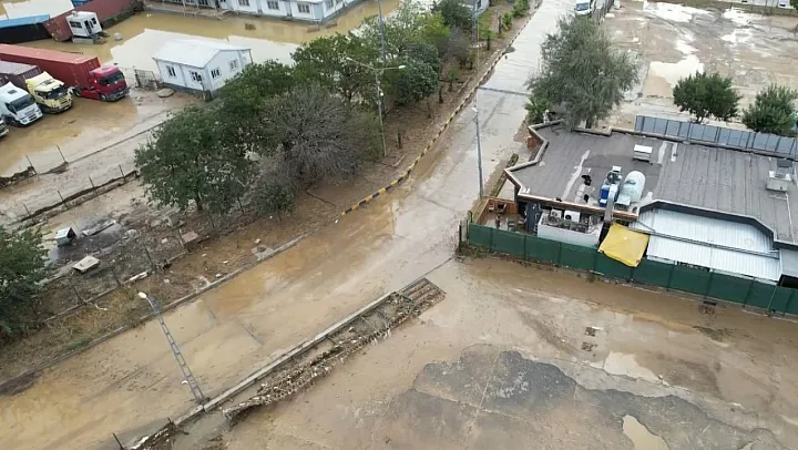 Sel sularının bastığı Halkalı Gümrüğü havadan görüntülendi