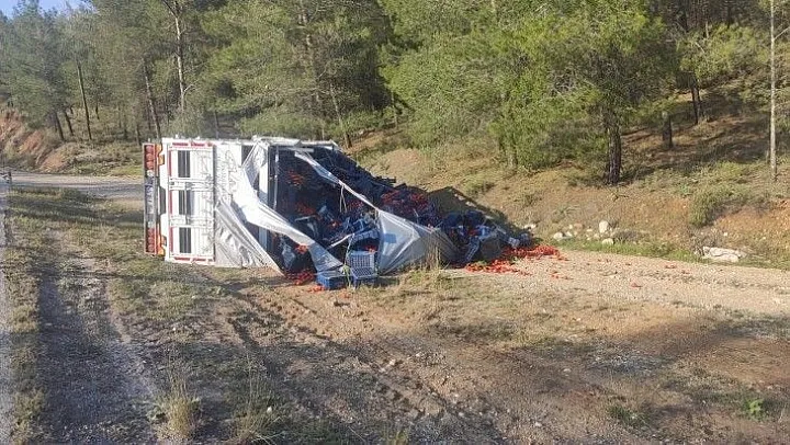 Kaza, Antalya-Fethiye kara yolu Çobanlar mevkiinde meydana geldi. Hasan K. idaresindeki 45 AFP 864 plakalı domates yüklü kamyon sürücüsünün direksiyon hakimiyetini kaybetmesi sonucu devrildi. Sürücünün yara almadan atlattığı kazayı görenlerin 112 Acil Çağrı Merkezinden yardım istemesi üzerine olay yerine 112 Acil Servis, polis ve itfaiye ekipleri sevk edildi. Devrilen kamyon çekiciyle kaldırıldı. Kamyonun kasasından etrafa saçılan domatesler işçiler tarafından toplandı. Kamyonun Karaköy Mahallesi'nden yüklediği domatesi Manisa'ya götürdüğü öğrenildi.