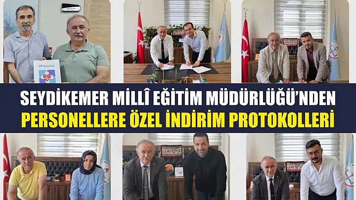 Seydikemer İlçe Millî Eğitim Müdürlüğü, eğitim çalışanlarının sosyal ve ekonomik imkanlarını güçlendirmek amacıyla çeşitli kurum ve kuruluşlarla özel indirim protokolleri imzaladı.