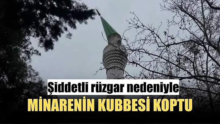 Şiddetli rüzgar nedeniyle minarenin kubbesi koptu