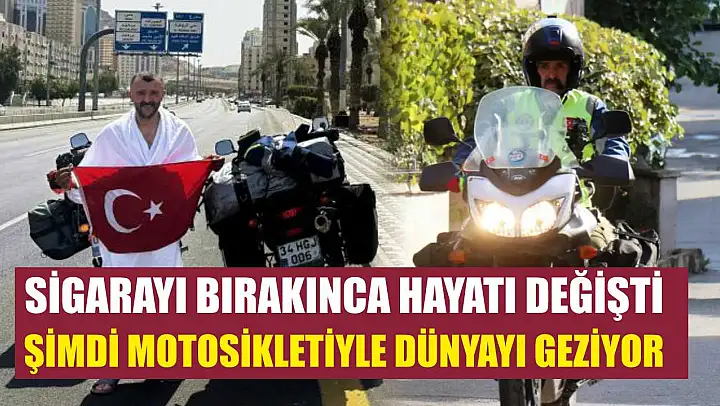 Motosikletçi İbrahim Değerli, sigarayı bıraktıktan sonra biriktirdiği para ile motosiklet yolculuklarına başladı. 15 yılda birçok farklı ülkeyi gezerek yaklaşık 250 bin kilometre yol kat eden Değerli, bu kez arkadaşıyla birlikte çıktığı yolculukta umre görevini motosikletiyle yerine getirdi.
