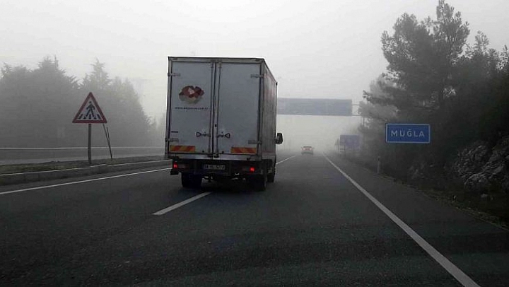 Muğla'nın Menteşe ilçesinde yoğun sis nedeniyle görüş mesafesi 10 metreye kadar düştü.