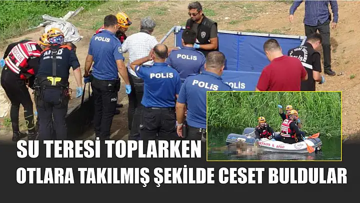 Antalya'da Düden Çayı'nda su teresi toplayan çift, su yüzeyinde otlara takılmış vaziyette gördükleri cismin yaklaştıklarında bir erkeğe ait ceset olduğunu fark etti. Üzerinden kimlik çıkmayan şahsın cansız bedeni AFAD ekipleri tarafından sudan çıkartıldı.