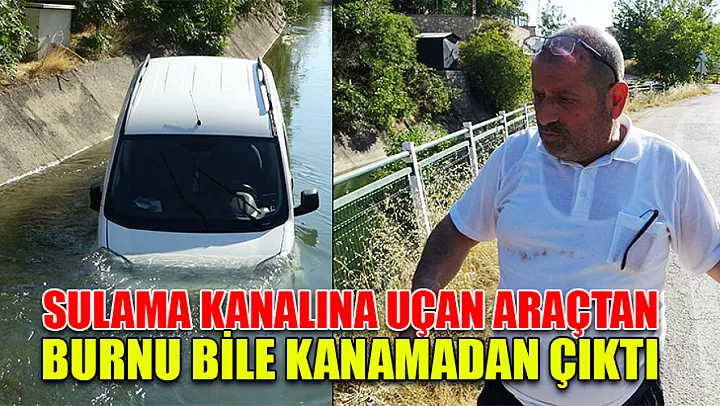 Kontrolden çıkan hafif ticari araç sulama kanalına uçtu. Araç sürücüsü kazadan burnu bile kanamadan kurtuldu.