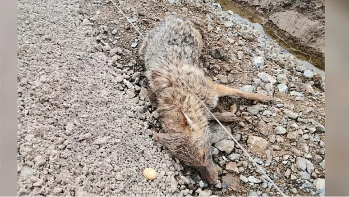 Kahramanmaraş'ın Türkoğlu ilçesi Beyoğlu Mahallesi'nde Tarım İşletmeleri Genel Müdürlüğü (TİGEM) arazisinde sulama kanalına düşen çakal, çevredeki duyarlı vatandaşlar tarafından kanaldan çıkartıldı.