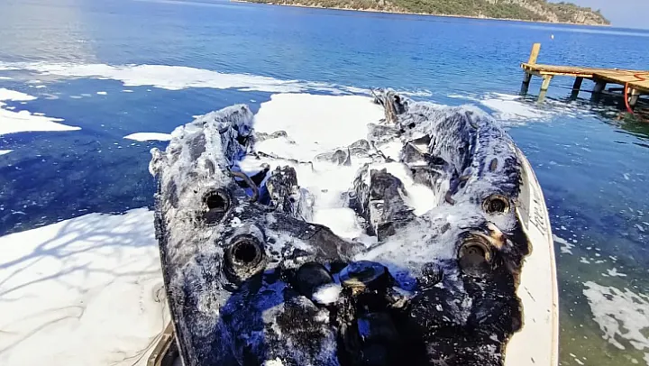 Muğla'nın Marmaris İlçesinde denizin ortasındaki sürat teknesi alev alev yandı.