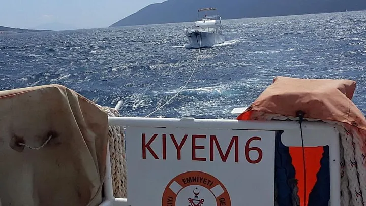 Muğla'nın Bodrum ilçesi açıklarında motor arızası nedeniyle sürüklenen motoryat, Kıyı Emniyeti tarafından kurtarıldı.