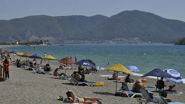 Muğla'nın gözde turizm merkezlerinden biri olan Fethiye sahillerinde sıcak hava tatilcilerin denize akın etmesine neden oldu.