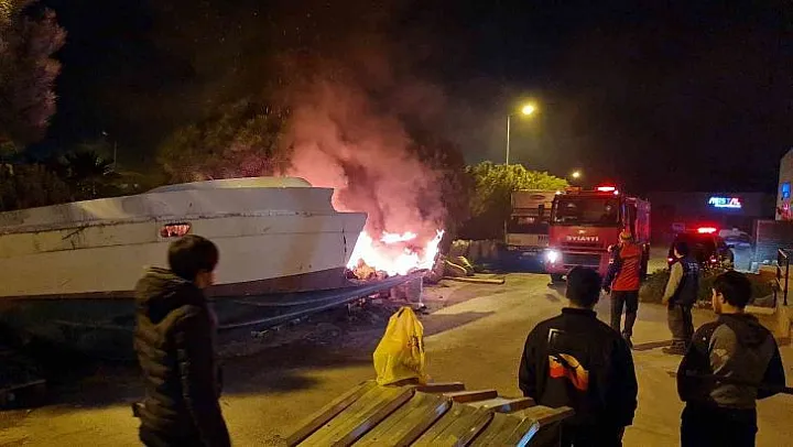 Tekne alev alev yandı