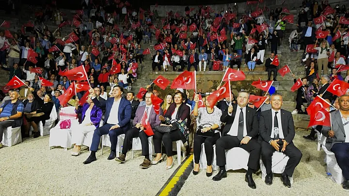 Fethiye Ticaret ve Sanayi Odası tarafından Telmessos Antik Tiyatro'da düzenlenen programda '19'dan Çok Önce, 23'ten Sonsuza' adlı senfonik destan sahnelendi.