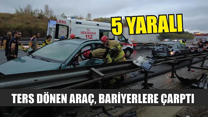 Ters Dönen Araç, Bariyerlere Çarptı: 5 Yaralı!