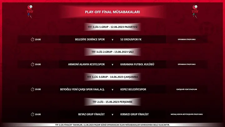 VAR sistemi uygulanacak play-off final maçlarının tarihleri ve programı şöyle:
