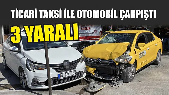 Burdur'da ticari taksi ile otomobilin kavşakta çarpışması sonucu meydana gelen trafik kazasında 3 kişi yaralandı.