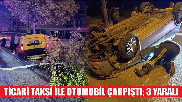 Ticari taksi ile otomobilin çarpışması sonucu iki araçta ters döndü. Kaza sonucu, 3 kişi yaralandı.