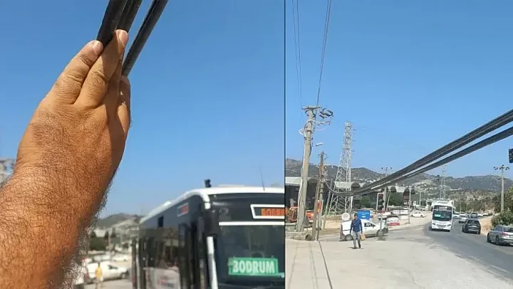 Bodrum'da ana yol kenarında yere sarkan telefon kabloları, trafik güvenliğini tehlikeye düşürüyor.