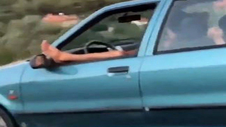 Muğla'dan Aydın'a seyir halinde olan araç sürücüsü, Ula-Menteşe arasında aracını sürerken, sol ayağını da camdan sarkıttığı görüntüler aynı istikamette seyir halinde olan bir başka sürücü tarafından cep telefonuna kaydedildi. Sosyal medyada paylaşılan görüntüler ile birlikte trafik ekiplerine de bilgi verildi.