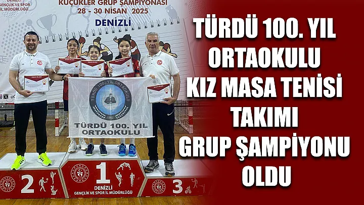 Denizli'de düzenlenen Okul Sporları Küçükler Grup Şampiyonası'nda Türdü 100. Yıl Ortaokulu Kız Masa Tenisi Takımı büyük bir başarıya imza atarak grup şampiyonu oldu.