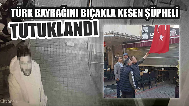 Bir iş yerinin önünde asılı olan Türk bayrağını bıçakla kesen şüpheli tutuklanarak cezaevine gönderildi.