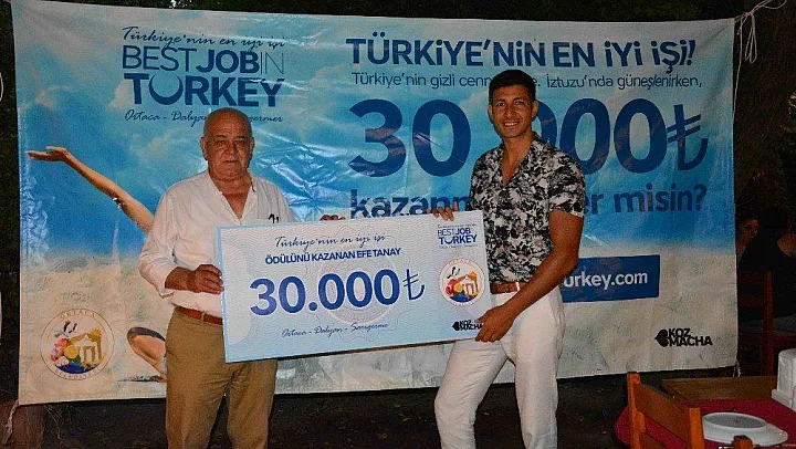 Kozmacha Reklam Ajansının ilk ayağını Ortaca Belediyesi iş birliği ile Ortaca, Dalyan ve Sarıgerme destinasyonunda gerçekleştirdiği "Türkiye'nin En İyi İşi” projesi kapsamında bölgenin tanıtım yüzü olan Efe Tanay, 1 ay boyunca hiç harcama yapmadan tatil yaptı. Tanay, Günlüklü Restoranda düzenlenen törenle Ortaca Belediye Başkanı Hasan Karaçelik ve Kozmacha Reklam Ajansı ortağı Fatih Akaslan'dan 30 bin liralık çekini aldı. 1-31 Ağustos tarihleri arasında hiçbir ücret ödemeden Ortaca, Dalyan ve Sarıgerme destinasyonunda çeşitli aktivitelere katılan ve bölgeyi gezen Tanay, deneyimlerini www.bestjobinturkey.com adresindeki blog sayfasında ve projenin Instagram, Facebook ve Youtube gibi sosyal medya hesaplarında paylaştı.