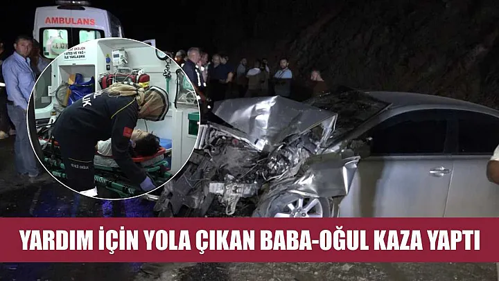 Yardım için yola çıkan baba-oğul kaza yaptı