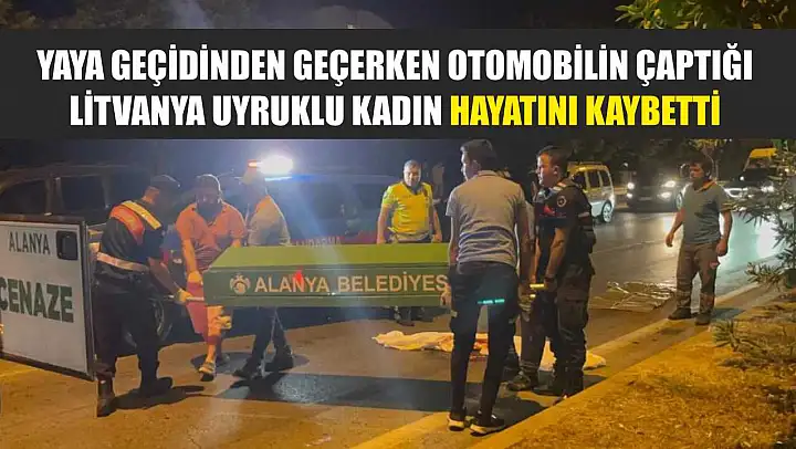 Antalya'nın Alanya ilçesinde meydana gelen trafik kazasında, yaya geçidinden yolun karşısına geçmeye çalıştığı sırada otomobilin çarptığı 35 yaşındaki Litvanya uyruklu kadın metrelerce sürüklenip olay yerinde hayatını kaybetti.