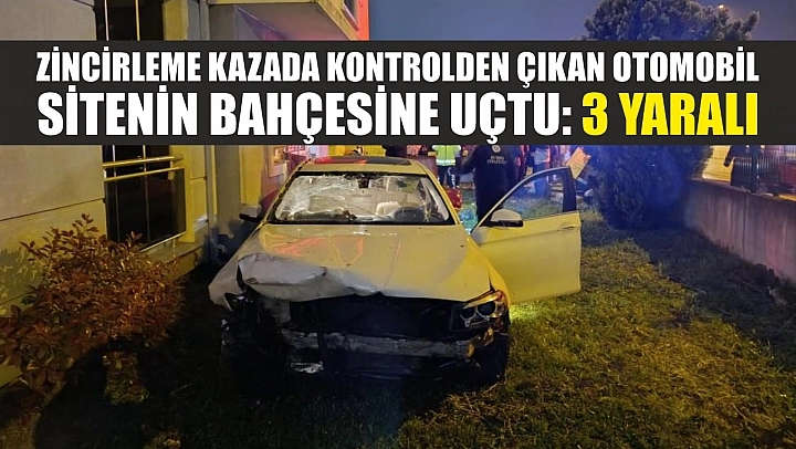 Zincirleme kazada kontrolden çıkan otomobil sitenin bahçesine uçtu: 3 yaralı