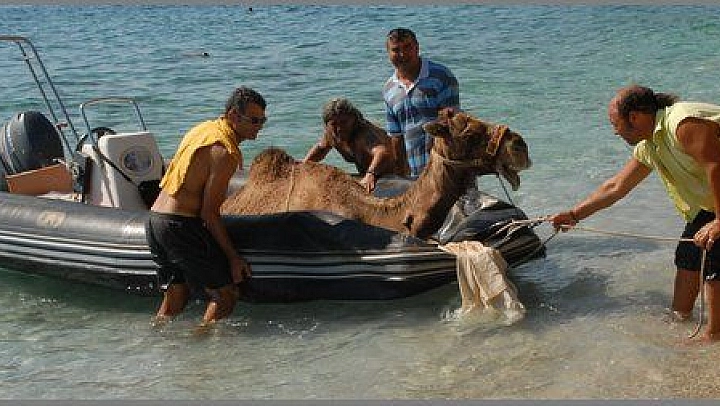 Fethiye'de ulaşımın sadece deniz yolu ile sağlandığı Kelebekler Vadi'sinde mahsur kalan Fatoş isimli bir deve zodyak botla karaya çıkarıldı.