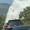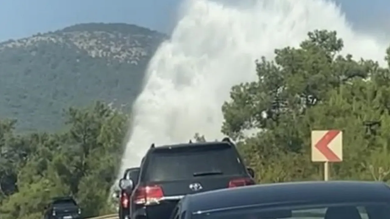 Muğla'nın Bodrum ilçesinde ana isale hattı patladı, tazyikli su metrelerce havaya yükseldi.