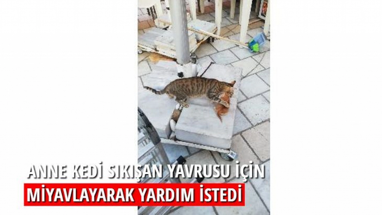 Anne kedi sıkışan yavrusu için miyavlayarak yardım istedi